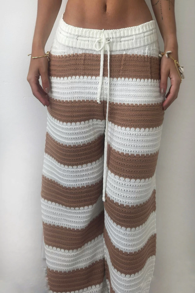 Sobre a peça: é a calça mais confortável que você vai ter, cintura baixa, fabricada toda em tricô, típico do litoral. A regulagem frontal é perfeita para ajustar melhor ao corpo.